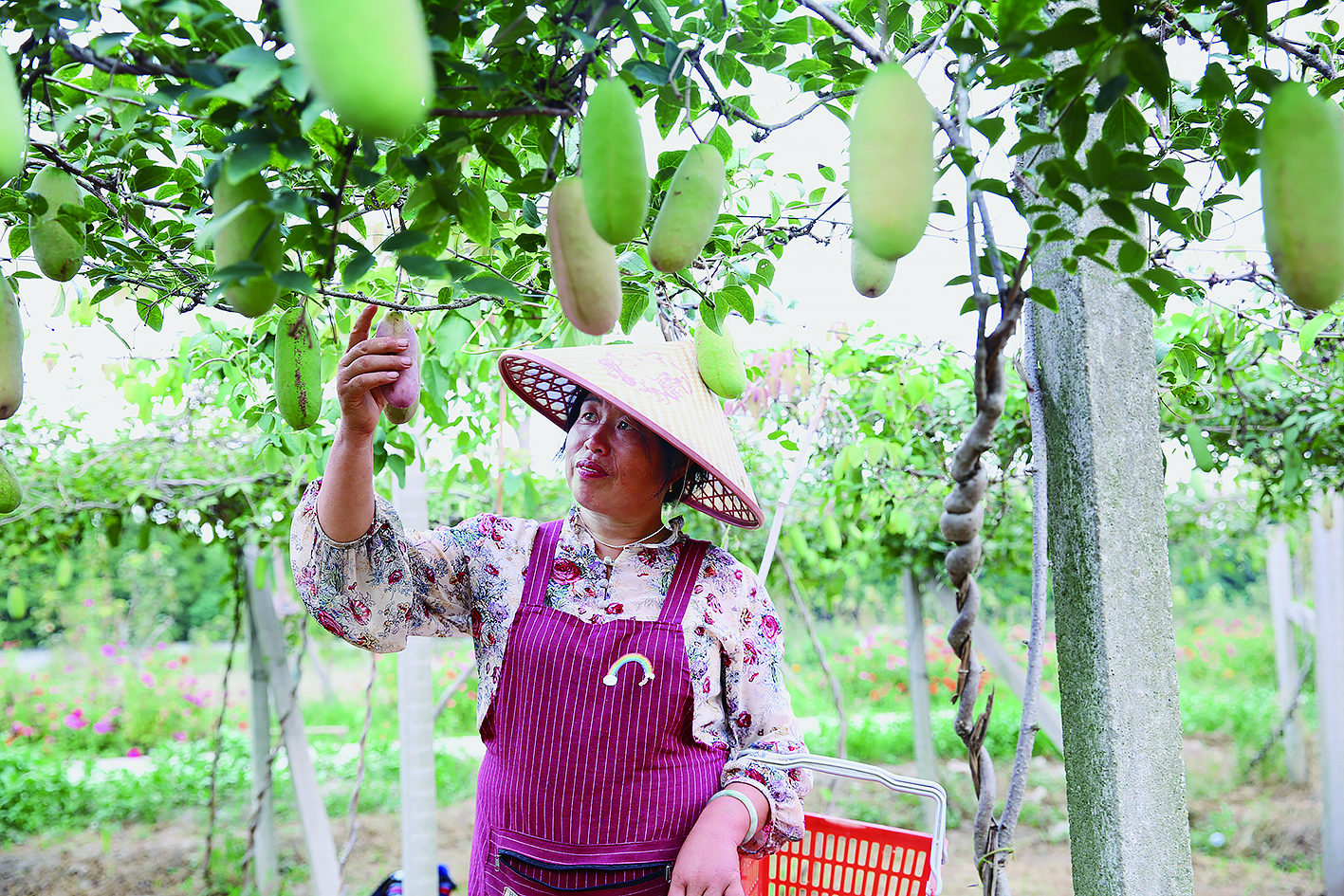 金秋十月,时令瓜果轮番上市,甘蔗、柿子、八月瓜等一茬接着一茬。图为华亭镇华亭村种植的八月瓜限量上新,其味软糯香甜。