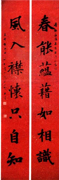 图为陆俨少艺术院举办的“2003年新春书画展”上,居住于嘉定的上海书协会员鞠晓枫所书的春联。
