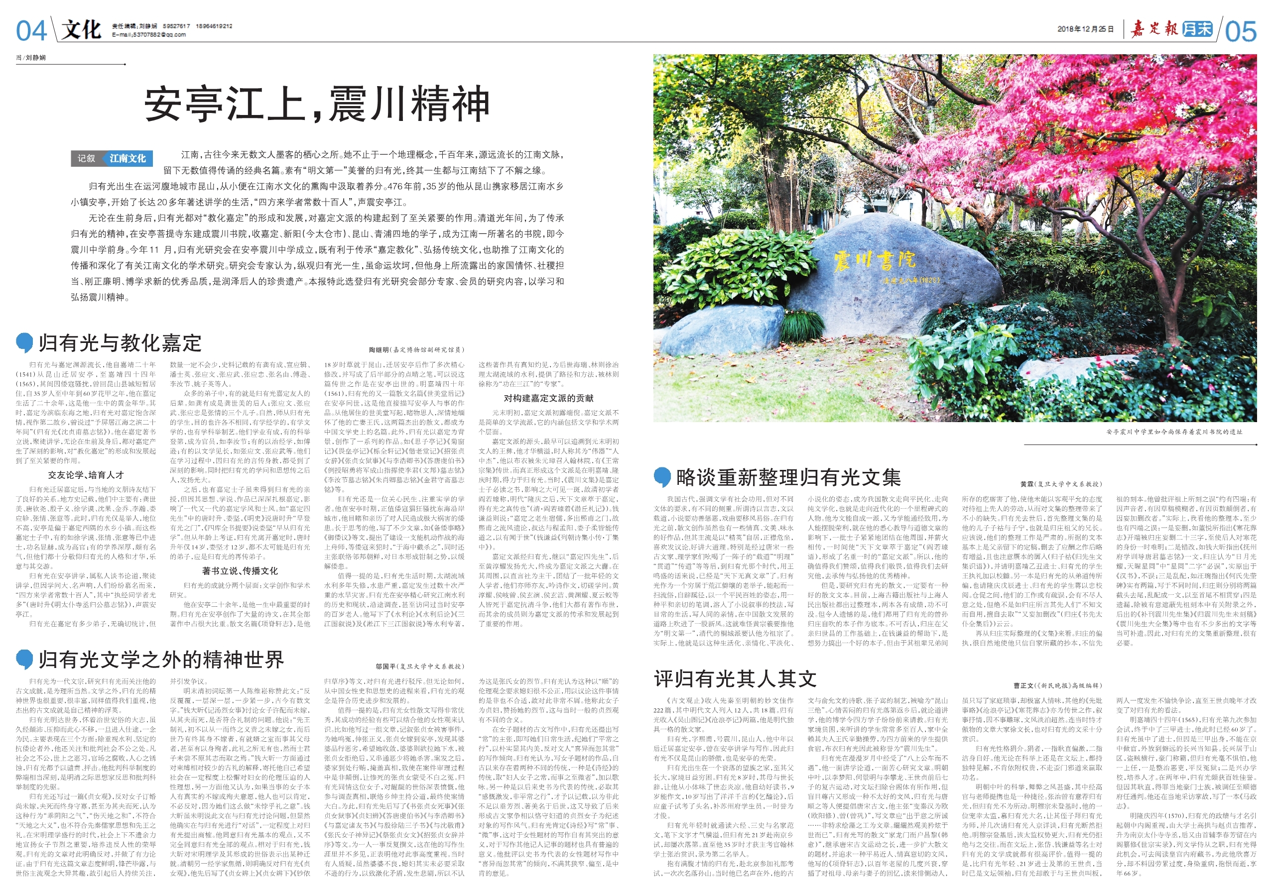 归有光为一代文宗,研究归有光而关注他的古文成就,是为理所当然。文学之外,归有光的精神世界也很重要,很丰富,同样值得我们重视,他杰出的古文成就是自己精神的浮英。